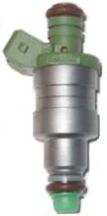 Bosch top feedProbably the most common type in use. Fuel goes in the top and exits out a single hole in the bottom. Most have a high impedance coil and uses a tapered needle (pintle) that seals into a tapered seat until energized. |