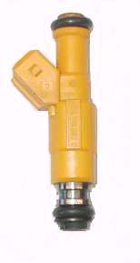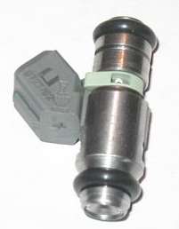 Bosch top feedProbably the most common type in use. Fuel goes in the top and exits out a single hole in the bottom. Most have a high impedance coil and uses a tapered needle (pintle) that seals into a tapered seat until energized. |